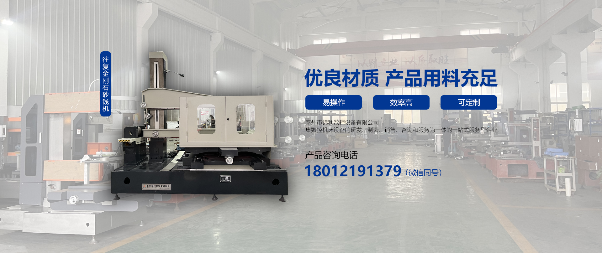 泰州市錦利數(shù)控設(shè)備有限公司位于江蘇中部古城泰州市高港區(qū),是專(zhuān)業(yè)從事金剛石砂線(xiàn)切割加工機(jī)床的研發(fā)、設(shè)計(jì)、生產(chǎn)、銷(xiāo)售為一體的企業(yè),主要產(chǎn)品有往復(fù)式金剛石砂線(xiàn)切割機(jī)、高速環(huán)形金剛石線(xiàn)鋸機(jī)、多線(xiàn)切割機(jī)等。